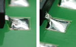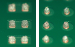 微小焊盤印刷性 左:0402貼片 / 右:φ0.15mm 對微小焊盤可穩(wěn)定印刷。 SN100C P604 D4 (完全無鹵素) |